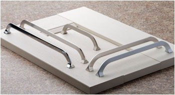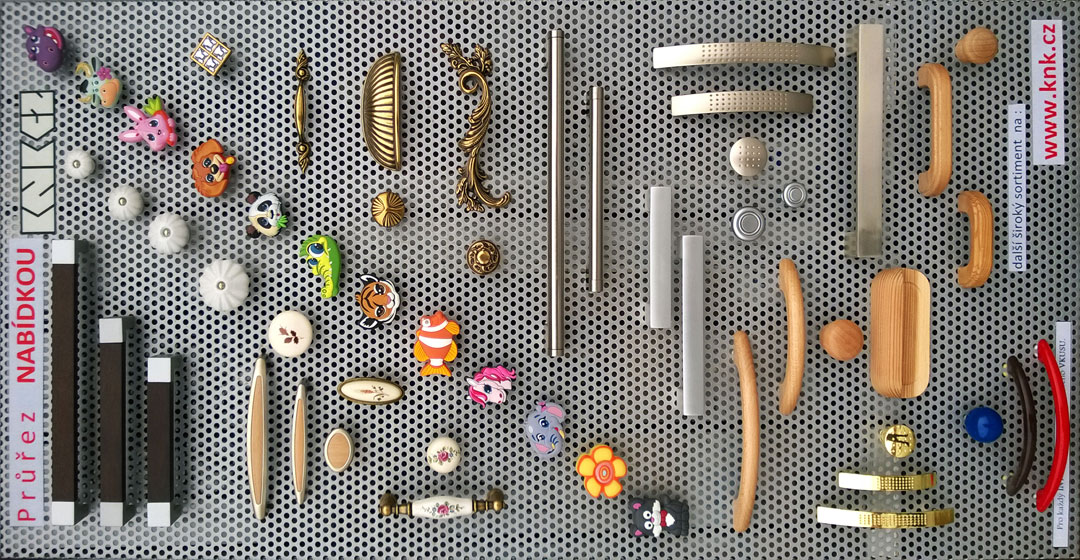 a panel s průzkumovou nabídkou úchytek a knopků z nové kolekce významného evropského výrobce, firmy NOMET, které budou v případě zájmu, zahrnuty do standardní nabídky, přičemž zatím je dodáváno na objednávku.