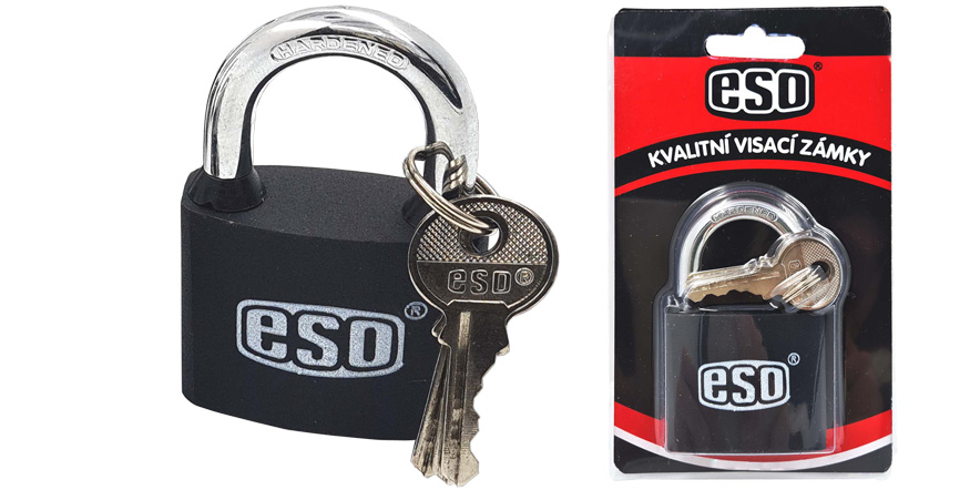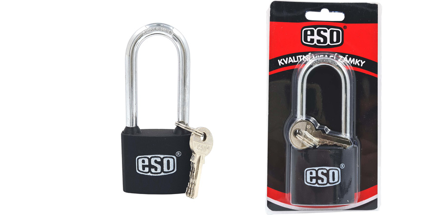 Na základě poptávek našich zákazníků jsme do dodávaného sortimentu doplnili také řadu černých visacích zámků ESO ve velikostech 25, 38 a 50mm v provedení se standardním či prodlouženým obloukem, každý se třemi dozickými klíči. Naskladněné zámky jsou, od velikosti 38mm, opatřeny pryžovými těsnícími kroužky, zajišťujícími zvýšenou odolnost dodávaných zámků, vůči povětrnostním vlivům.