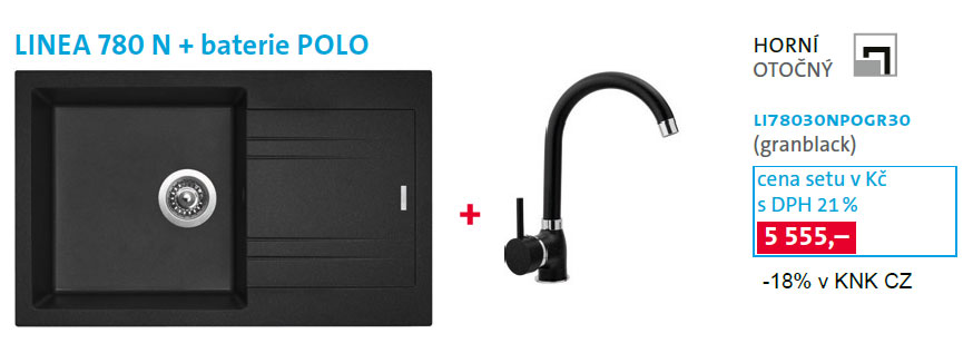 Ve spolupráci se společností Sinks, jsme pro Vás připravili akci platnou do odvolání, v rámci níž máte možnost, v setu s jedním z granitových dřezů (LINEA 780 s odkapem, LINEA 600 s půlodkapem, VIVA 455 bez odkapu) zakoupit novou baterii POLO v barvě GR30 - Grandblack, jež je dostupná pouze jako součást těchto setů.