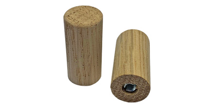 Celodřevěný knopek se závrtnou maticí M4, vyrobený z dubového dřeva, povrchově neupravený, dodávaný bez šroubku. Šroub M4, potřebné délky (obvykle M4 x 25mm, pro uchycení na desku tl.18mm) je možno objednat zvlášť. Rozměry: pr.15 v.30 mm