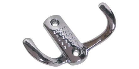 Kód produktu: Z341G2 2.51 Celokovový šatní věšák z galvanicky pokovené slitiny zinku, k přišroubování na stěnu, dodávaný včetně vrutů. Základna 5,5 mm. Rozměry: d.25 š.71 v.48