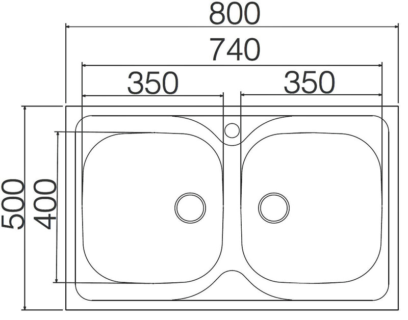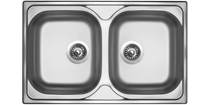 Nerezový dvoudřez bez odkapu do skříňky min.800mm, vyrobený z nerezového plechu tl.0,6mm včetně 3,5" velké výpusti a sifonu pro úsporu místa s odbočkou na myčku. Dřez je dodáván včetně těsnění, sifonu a příchytek.