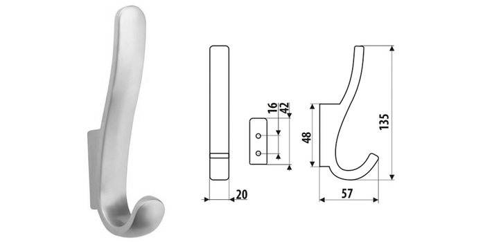 Kód produktu: 062757 G6.51 Celokovový šatní věšák z galvanicky pokovené slitiny zinku, k přišroubování na stěnu, dodávaný včetně vrutů, pro skrytou montáž. Rozměry: d.60 š.20 v.130