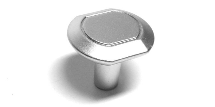 Kód produktu: A424G6.50 Jednodílný celokovový knopek ze slitiny zinku galvanicky pokovený, balený včetně šroubku M4 pro uchycení. Rozměry: d.27 š.24 v.23 mm
