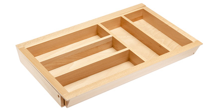 Sada jednoho kusu šířkově stavitelného příborníku se zkosenými hranami, vyrobeného z lakovaného bukového dřeva, ideální pro použití v zásuvkách AxisPro délky 500mm. Šířka příborníku je nastavitelná v rozpětí 305 až 535mm, po nastavení dle šířky zásuvky, je šířka aretována pomocí přiložených vrutů.