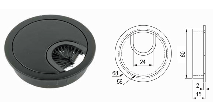 Úvod > E-shop > Technické kování > Prvky > Průchodky > Kabel.průch.pr.60 kov. ČERNÁ GT