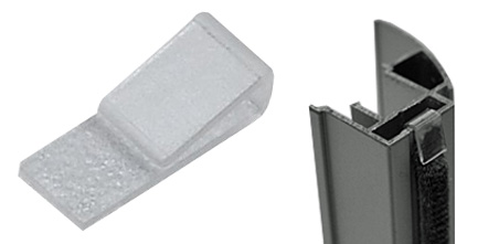 Kód produktu: 8194.21 Transparentní plastová prvek k pojištění přichycení konců těsnících proti- prachových kartáčků používaných při výrobě dveří vestavných skříní