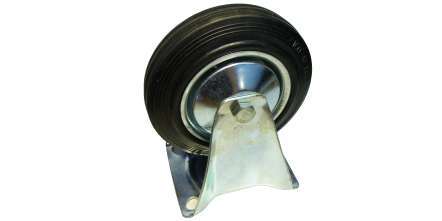Kód produktu: 514160 1.14 Kombinované pevné kolečko z galvanicky pokoveného ocelového plechu, rotační část z galvanizované oceli s černým gumovým návlekem.Nosnost 100kg Základna 110x133mm Rozměry: d.160 š.110 v.195 mm