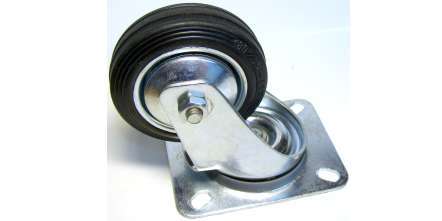 Kód produktu: 514085 2.14 Kombinované otočné kolečko z galvanicky pokoveného ocelového plechu, rotační část z galvanizované oceli s černým gumovým návlekem. Nosnost 40kg Základna 79x105mm Rozměry: d.130 š.79 v.105 mm