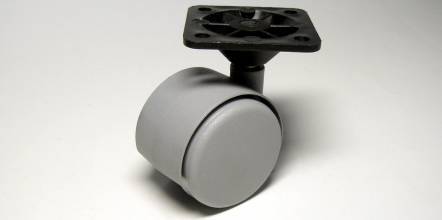 Kód produktu: 400 45 40.26 Celoplastové nábytkové dvojkolečko typu A pr.40mm, šedé, dodávané v kompl. s uchycením černou plastovou destičkou 45x45mm. Nosnost 20kg. Rozměry: pr.40 v.58 mm