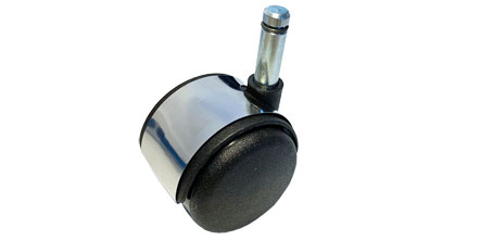 Celoplastové židlové dvojkolečko se stříbrným převlečným plechem, typu A pr.50mm pro židlová uchycení, dodávaný v kompletu s uchycením na čep pr.10x31mm.. Nosnost 40kg.