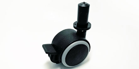 Celoplastové mechanicky bržděné dvojkolečko typu BA pro tvrdé povrchy, s čepem A8 a volně loženým plastovým pouzdrem pr.13x26mm, do kterého se po namontování pouzdra, kolečko narazí. Dynamická nosnost kolečka 20kg, Výška kolečka bez uchycení 45mm, šířka 39mm.