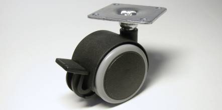 Kód produktu: 412 42 00.26 Celoplastové brzděné dvojkolečko typu BA pr.40mm pro nábytková uchycení, pro tvrdé podlahy,dodávané v kompletu s uchycením kovovou destičkou 42x42. Rozměry: pr.40 v.55 mm Nosnost 20kg.