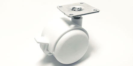 Kód produktu: 510 42 90.26 Celoplastové bržděné dvojkolečko typu BA pr.50mm pro nábytková uchycení, dodávané v kompletu s uchycením kovovou destičkou 42x42mm. Nosnost 40kg. Rozměry: pr.50 v.68 mm