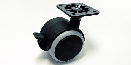 Kód produktu: 512 45 00.26 Celoplastové bržděné dvojkolečko typu BA pr.50mm pro nábytková uchycení, a tvrdé podlahy, dodávané v kompletu s uchycením plast.destičkou 45x45mm. Rozměry: pr.50 v.68 mm Nosnost 40kg.