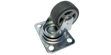 Kombinované otočné kolečko,třmen z galvanicky pokoveného ocelového plechu, rotační část z šedého plastu s měkčenou PU obručí. Jednořadé kuličkové ložisko po základnou 48x34x1,2mm, 4 otvory pr.5,5mm . Nosnost 20kg.