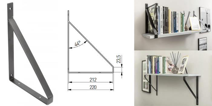 Ocelová, svařovaná, černým matným lakem povrchově upravená, jednodílná policová konzola, vyrobená z ocelové pásoviny, ideální pro vytvoření harmonické, opticky lehké a moderní police například v moderním obývacím pokoji. Dvoubodové uchycení.ke stěně, dva body k upevnění desky. Upevňovací materiál není součástí dodávky. Nosnost 30kg/ks. Ideální pro kombinaci s nohami ARTO.
