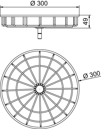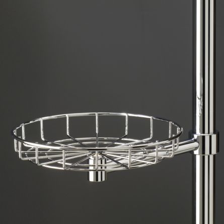 Kód produktu: T 5204.1 30.80 Drátěný koš vyrobený z galvanicky chromované oceli, upevněný na sloup kuchyňských předmětů.pomocí ramene T5212, mimo osu sloupu. Rozměry: pr.300 v.49 mm