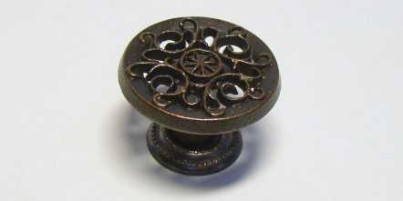 Kód produktu: 09200.16 Jednodílný knopek ze slitiny zinku galvanicky pokovený patinou na mědi (pat.) nebo mosazí (Ms), dodávaný včetně šroubku M4. Rozměry: pr.32 v.21 mm
