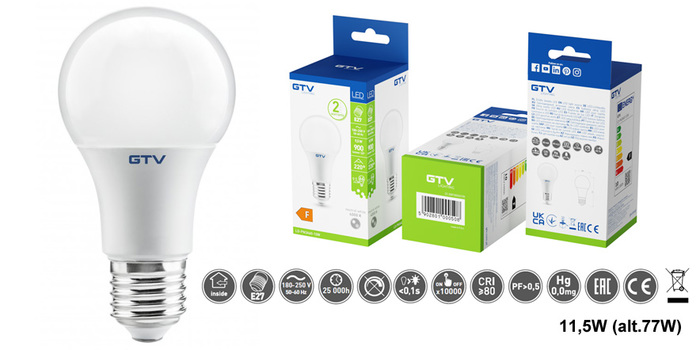 LED žárovka světelný zdroj 12W denní bílá (4000K), 1100lm (náhrada cca 75W klasické žárovky do patice E27 s velkým závitem), nestmívatelná. 180-250V 50-60Hz, PF>0,5, úhel svitu 200°, čipy SMD2835, životnost 25000h, sepnutí 10000x, CRI=80, start<0,1s