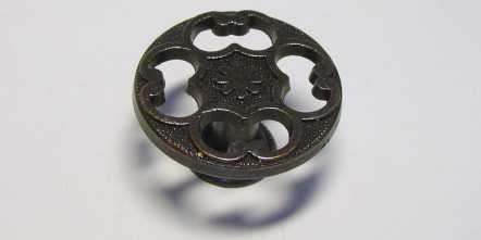 Kód produktu: 08800.16 Dvoudílný knopek ze slitiny zinku galvanicky pokovený patinou na mědi (pat.) nebo mosazí (Ms), dodávaný včetně šroubku M4. Rozměry: pr.41 v.21 mm