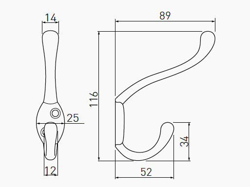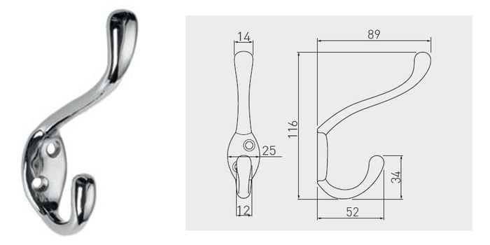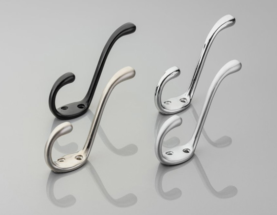 Kód produktu: MALAGA0G2.51 Celokovový šatní věšák se dvěma háčky, z galvanicky pokovené či lakované slitiny hliníku, k přišroubování na stěnu, dodávaný včetně vrutů. Rozměry: d.89 š.25 v.116 r.18 mm