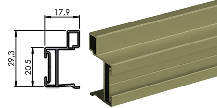 Úchytková hliníková lišta MODERN, s drážkou pro nasunutí širokého těsnícího kartáčku 14x6mm (art.0099.21), na posuvné dveře tl.12,16,18mm, případně kombinace se zrcadlem, do hmotnosti 50 kg. Barva šampaň.