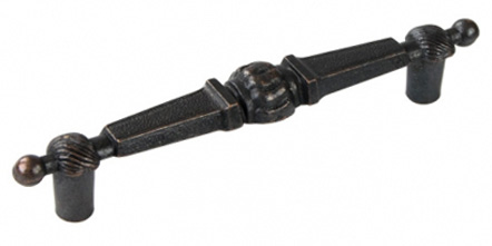 Jednodílná úchytka ze slitiny zinku galvanicky pokovená patinou na mědi (tmavá patina), dodávaná včetně šroubků M4. Nestandardní rozteč šroubů (mimo násobky 16mm) pro upevnění úchytky, 87mm, umožňuje její použití jako náhradu za za jednotlivě vyráběné původní úchytky.