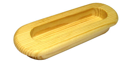 Kód produktu: 40 000 103.10 Celodřevěná zápustná úchytka k zalepení do otvoru 108x35x12 mm, vyrobená z borovicového dřeva povrchově neupravená. Rozměry: d.120 š.41 v.16 mm
