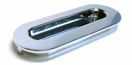 Kód produktu: 6525G2.47 Celokovová zápustná úchytka ze slitiny zinku, galvanicky pokovená, balená včetně šroubků M4 pro uchycení, do oválného otvoru 100x30x10mm. Rozměry: r.96 d.107 š.42 v.12 mm