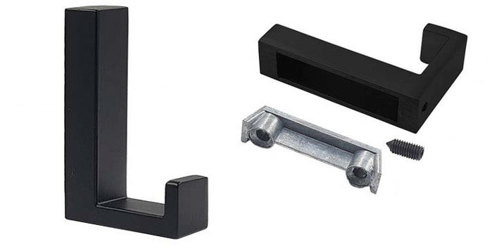 Celokovový šatní jednověšák z galvanicky pokovené či lakované slitiny zinku, se skrytým způsobem přišroubování na stěnu, dodávaný včetně vrutů, hmoždinek a imbus klíče pro dotažení k závěsnému prvku.