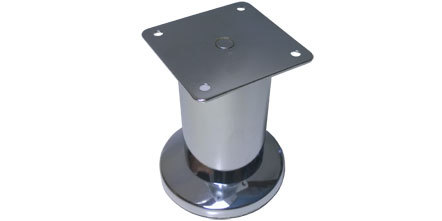 Kód produktu: 64140 G2.41 Kulatá ocelová nožka galvanicky pokovená, s výškovou regulací -0/+5mm, k přišroubování, pro skříňový nábytek. Destička 65x65 otvory pr.5 po 50mm Rozměry: pr.82 v.100 mm