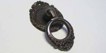 Kód produktu: 03800.16 Dvoudílný sklopný knopek ze slitiny zinku galvanicky pokovený patinou na mědi (pat.) nebo mosazí (Ms), dodávaný včetně šroubku M4. Rozměry: d.37 š.18 v.60 mm