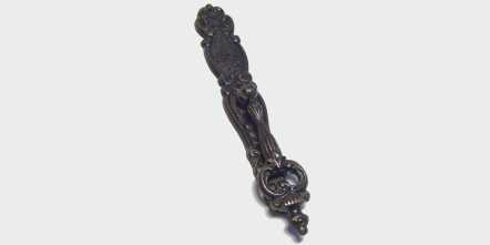 Kód produktu: 00100.16 Dvoudílný sklopný knopek ze slitiny zinku galvanicky pokovený patinou na mědi (pat.) nebo starobronzem (st.br.), dodávaný včetně šroubku M4. Rozměry: d.26 š.19 v.170 mm