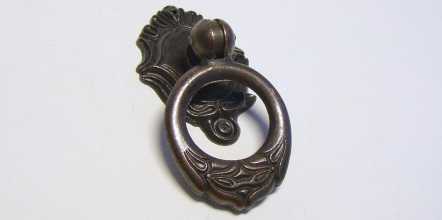 Kód produktu: 03400.16 Dvoudílný sklopný knopek ze slitiny zinku galvanicky pokovený patinou na mědi (pat.) nebo mosazí (Ms), dodávaný včetně šroubku M4. Rozměry: d.33 š.22 v.66 mm