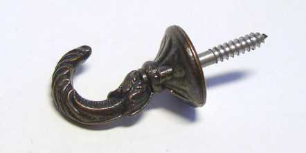 Kód produktu: 18220.16 Celokovový rustikální šatní věšák, ze slitiny zinku, galvanicky pokovený patinou na mědi (pat.) nebo mosazí (Ms), k zašroubování do dřeva. Rozměry: d.33 š.20 v.22 mm
