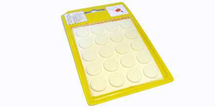 Kód produktu: 049103B.19 Sada samolepících filcových podložek k ochraně parketových, laminátových a jiných podlah před poškozením, na této umístěným nábytkem. Bílá nebo hnědá Rozměry: pr.16 v.3 mm