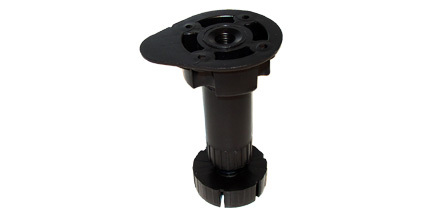 Celoplastová třídílná soklová kuchyňská noha z černého plastu, používaná