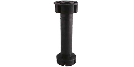 Celoplastová třídílná soklová kuchyňská noha z černého plastu, používaná