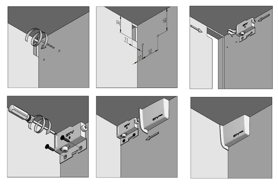 V dnešní době je těžké si představit moderní kuchyni bez závěsných skříněk. Zůstávají nenahraditelné, protože nám umožňují maximálně využít malý prostor v našich bytech. Závěsná kování FORZA zaručují bezpečné používání kuchyňského nábytku. Korpus na nich zavěšený, je velmi stabilní, což je v případě vysokých a silně zatížených skřínek velmi důležité. Maximální zatížení skřínky je 150 kilogramů při použití dvou závěsných kování. Závěsné kování se montuje pohodlným způsobem - do zadní části korpusu zevnitř a následně se zavěsí na montážní lištu. Závěsné kování má standardní nastavení ve dvou rovinách: první slouží ke zvednutí nebo snížení skříňky, druhou lze skříň přitáhnout ke stěně. Ideálním estetický doplněním závěsného kování je sada krytek FORZA.