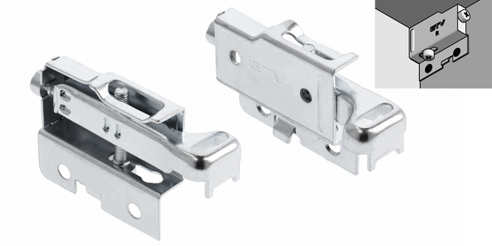 Sada dvou prvků k zavěšení horních kuchyňských skříněk na RK závěsnou lištu, vyrobená ze zinkované oceli s regulací výšky a vzdálenosti od stěny pomocí šroubů s křížovou drážkou. Nosnost sady 150kg. K sadě je možno zakoupit ještě černé či bílé krytky, vylepšující vzhled kování uvnitř skříňky.