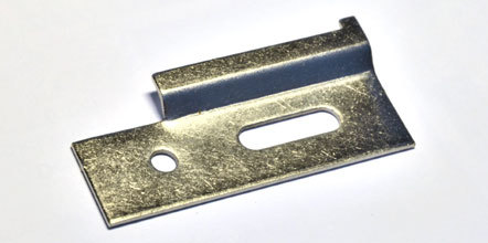 Kód produktu: 22403.29 Závěsný ocelový plech pro připevnění horních kuchynských skříněk pomocí rektifikačního kování na závěsný plech. Pravý. Rozměry: d.70 v.33 tl.1,7 mm