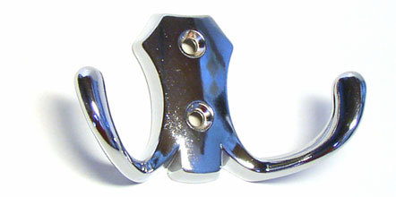 Kód produktu: Z361G2.51 Celokovový šatní věšák z galvanicky pokovené slitiny zinku, k přišroubování na stěnu, dodávaný včetně vrutů. Rozměry: d.30 š.77 v.50