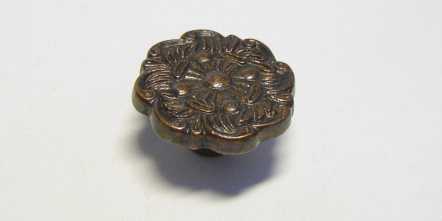 Kód produktu: 06400.16 Dvoudílný knopek ze slitiny zinku galvanicky pokovený patinou na mědi (pat.) nebo mosazí (Ms), dodávaný včetně šroubku M4. Rozměry: pr.28 v.17 mm