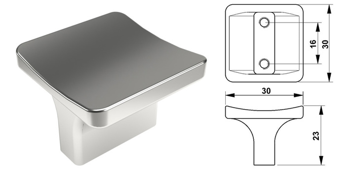 Kód produktu: A1734G2.50 Jednodílná celokovová úchytka čtvercového tvaru se zaoblenými rohy, ze slitiny zinku galvanicky pokovená, balená včetně šroubků M4 pro uchycení. Rozměry: r.16 d.30 š.30 v.23 mm