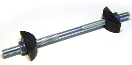 Kód produktu: 8 62069.30 Komplet zinkovaného ocelového svorníku, plastových misek a šestihranných matic M8, pro spojení pracovních desek. Rozměry: d.150 š.33 v.16 mm