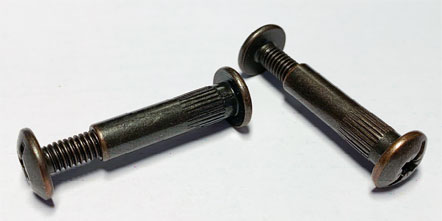 Komplet šroubu M6x15 a speciální matice M6x30 používaný pro spojení bočních stěn vedle sebe umístěného nábytku (např. skříněk kuchyňské linky), pro tl.min 16mm. Povrchově upravený hnědou patinou. Do otvoru pr.8mm.
