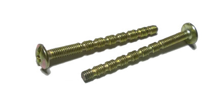 Kód produktu: 1 40503.30 Metrický šroub s přizpůsobitelnou délkou (děleným závitem) 15-50mm po 5mm a křížovou drážkou pro upevnění úchytek či knopků k desce. Žlutý zinek, pat. Rozměry:závit.M4 d.50 mm