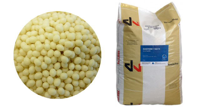 Tavné lepidlo v přírodní barvě, pro strojní lepení nábytkových hran, na bázi EVA DUDITERM 1182 je charakterizováno nízkou viskozitou a středně vysokou tepelnou odolností. Má zvláštní strukturu, která je zejména vhodná pro lepení rozdílných materiálů v oblasti profilového obalování a olepování hran na ručních strojích. Barva natur světlá.
