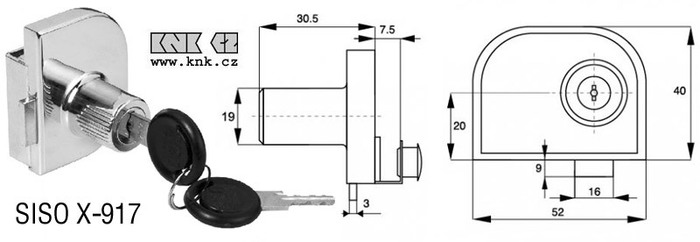 Celokovový nasouvací zámek na dvoukřídlá skleněná dvířka bez vrtání, galvanicky pokovený, dodávaný včetně dvou cylindrických klíčů. Stejný uzávěr - více zámků se stejnými klíči.